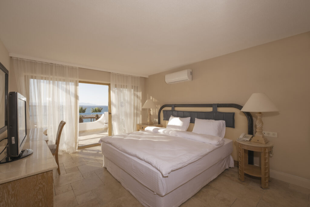 Akdeniz mimarisine sahip, sade tasarımı ve ferah atmosferiyle öne çıkan bu balkonlu odalar, deniz manzarası sunar. Paravanlı olarak tasarlanmış bu odalar, dört kişilik konaklamalar için idealdir.